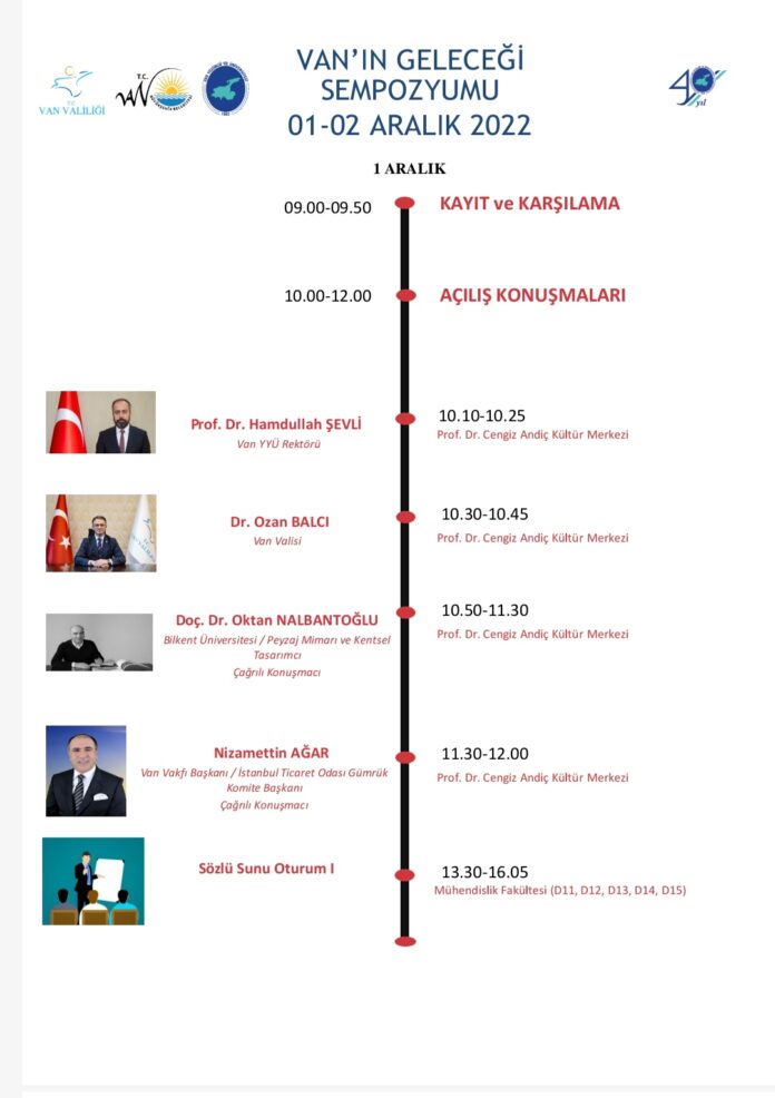 Van Valiliği, Van Büyükşehir Belediyesi ve Van Yüzüncü Yıl Üniversitesi ev sahipliğinde 1-2 Aralık 2022 tarihleri arasında üniversite kampüsünde düzenlenecek olan “VAN’ın GELECEĞİ” Sempozyumu’na Van Vakfı Başkanımız ve İstanbul Ticaret Odası Gümrük Komite Başkanı Sn.Nizamettin Ağar Konuşmacı Katılıcaktır